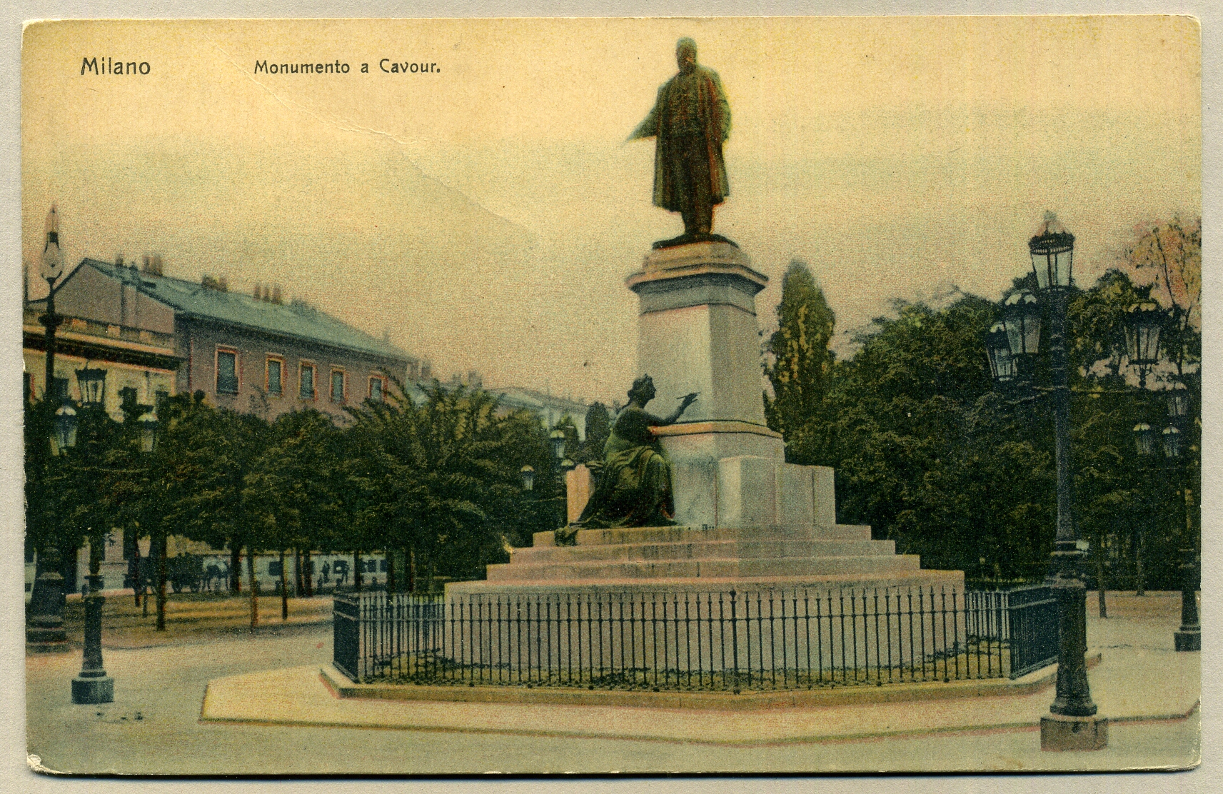 Auf den flüchtigen Blick eine typische Ansicht aus Mailand. Das Monument für Camillo Benso, Conte di Cavour vor der Porta Nuova in Mailand ist zwar nicht das bekanteste Postkarten-Motiv Italiens, aber insbesondere in Italien ist Cavour als einer der Väter der Einheit Italiens bekannt. In vielen italienischen Städten und Dörfern ist einer der zentralen Plätze oder eine der wichtigsten Straßen nach ihm benannt.
